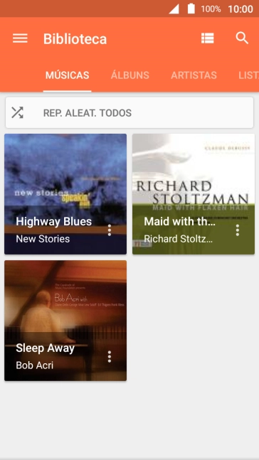 É possível utilizar o leitor de música para reproduzir ficheiros de música transferidos para o telefone.