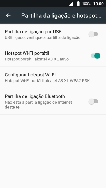 Utilize o Alcatel A3 XL Android 7.0 como hotspot Wi-Fi