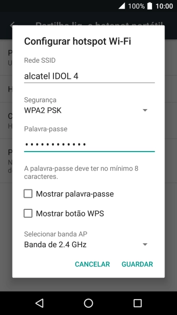 Introduza a password do seu hotspot Wi-Fi e estabeleça a ligação.