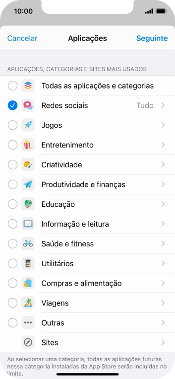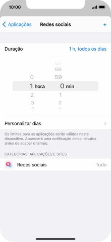 Defina o limite de tempo pretendido para uso da categoria selecionada.