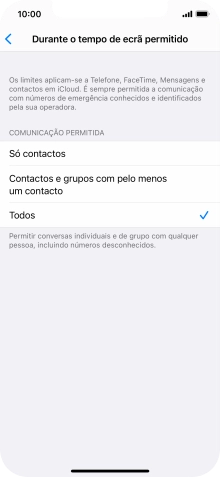 No Tempo de ecrã só estará acessível a comunicação com os contactos que permitir.