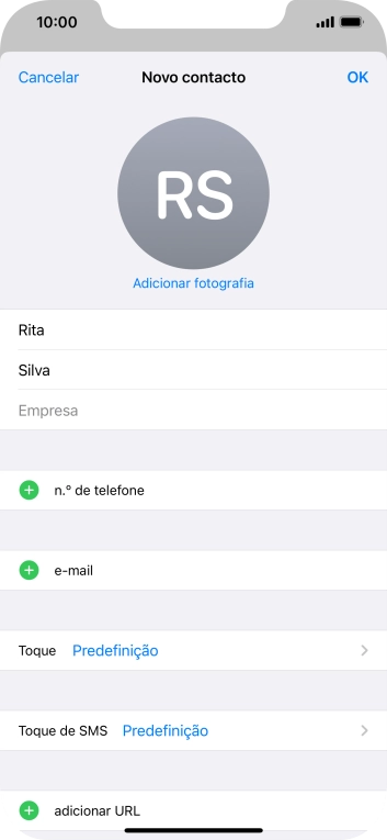 Siga as indicações no ecrã para adicionar outras informações, como por ex., o endereço de e-mail ou um toque personalizado.