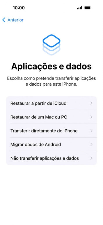 Se tiver previamente guardado conteúdo, pode restaurar o conteúdo a partir de uma cópia de segurança em iCloud ou restaurar o conteúdo a partir de uma cópia de segurança do iTunes. Também é possível transferir conteúdo de um telefone Android.