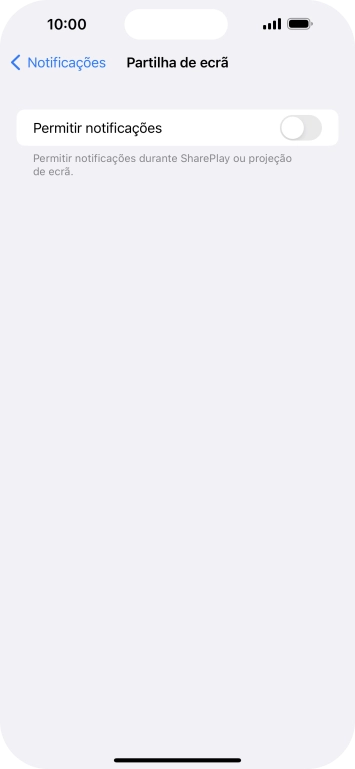 Pode ativar ou desativar a visualização de notificações enquanto usa o SharePlay ou o Screen Mirroring.