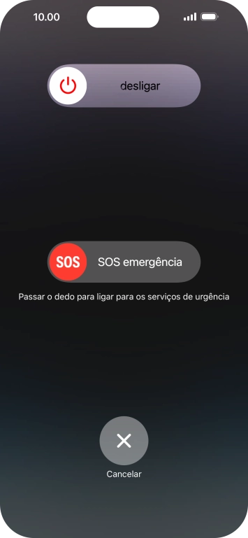 Simultaneamente mantenha premido o botão lateral até aparecer no ecrã o ícone de desligar.