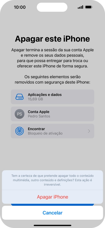 Introduza a password do ID Apple e prima Desactivar. Aguarde um momento enquanto o telefone restabelece as definições originais. Siga as indicações no ecrã para configurar o telefone de modo que este fique pronto a ser utilizado.