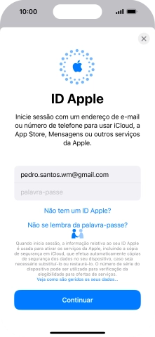 Com um ID Apple tem acesso a várias funções do telefone, por ex. iCloud, App Store e iTunes. Antes de ativar um ID Apple no telefone, é necessário configurar o telefone para a Internet.