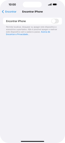 Com a ajuda da função “Localizar o meu iPhone” é possível encontrar o seu telefone se, por ex., o perder, ou bloquear o telefone se ele tiver sido roubado. Antes de ser possível escolher as definições para a função “Localizar o meu iPhone”, é necessário ativar o ID Apple no telefone.