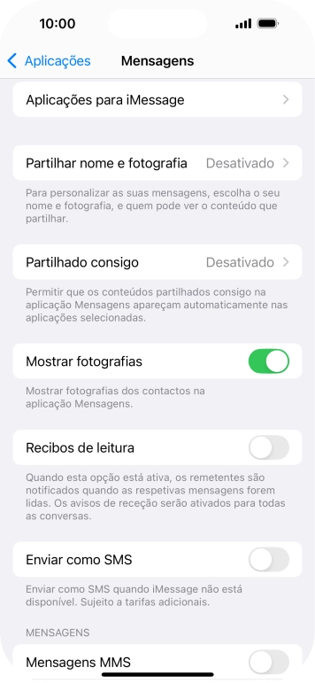 Se ativar a função, as iMessages serão enviadas como mensagens curtas normais caso o serviço não esteja disponível.