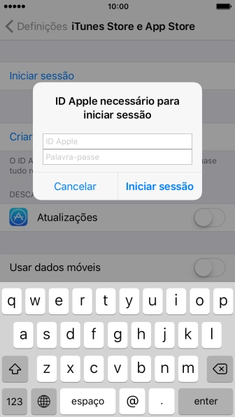Com um ID Apple tem acesso a várias funções do telefone, por ex. iCloud, App Store e iTunes. Antes de ativar um ID Apple no telefone, é necessário configurar o telefone para a Internet.