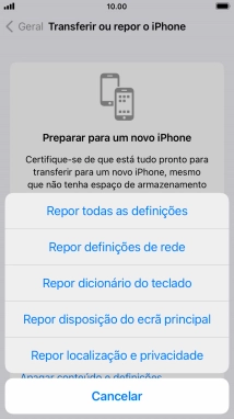 Restabeleça as definições originais do Apple iPhone SE (2022) iOS 15.6