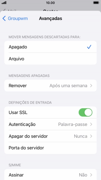 Prima o indicador junto a "Usar SSL" para ativar a função.