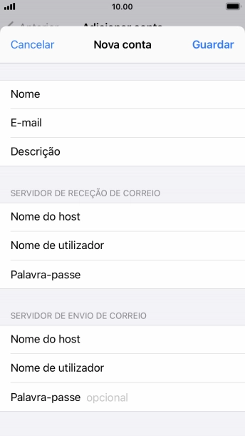 Prima Nome do host e insira smtp.vodafone.pt.