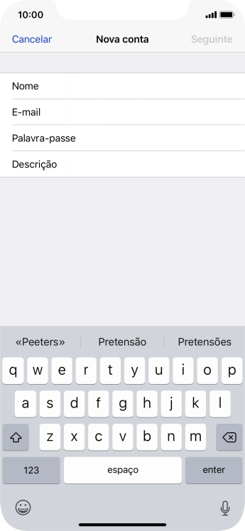 Prima Descrição e introduza o nome pretendido da conta de e-mail.