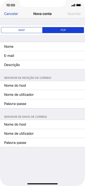 Prima Nome do host e introduza o nome do servidor de receção do fornecedor de e-mail.