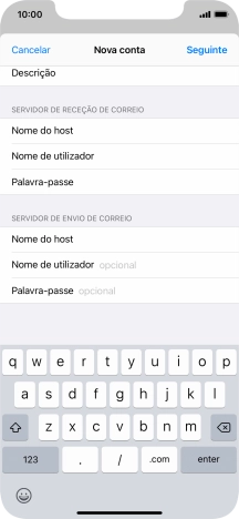 Prima Nome do host e introduza o nome do servidor de receção do fornecedor de e-mail.