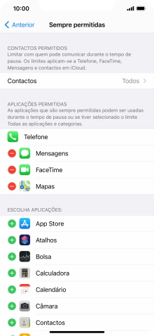 Escolha as definições para o Tempo de utilização no Apple iPhone Xs Max iOS 14.0