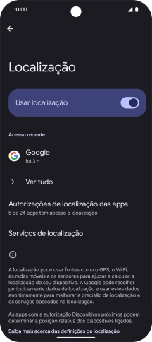 Prima o indicador junto a "Usar localização" para ativar ou desativar a função.