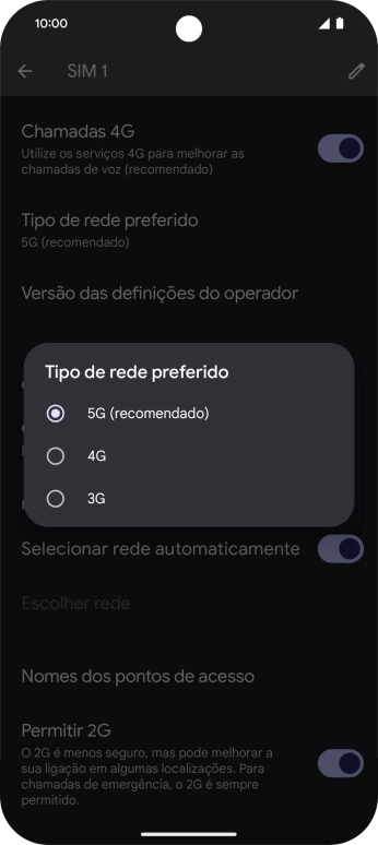 Escolha o tipo de rede no Google Pixel 9 Pro Android 14