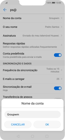 Prima o campo junto a "Sincronizar e-mails a partir desta conta" para ativar a função.