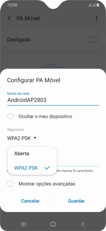 Prima WPA2 PSK para proteger o hotspot Wi-Fi com uma password.