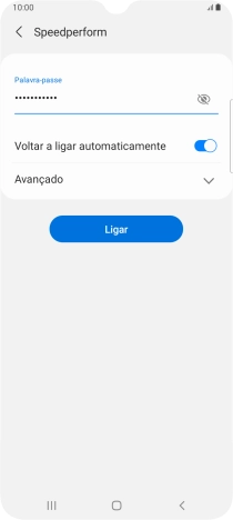 Introduza a password da rede Wi-Fi e prima Ligar.
