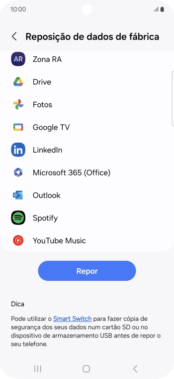 1. Procure "Reposição de dados de fábrica"