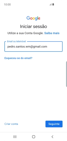 Se não tiver uma conta Google, prima Criar conta e siga as indicações no ecrã para criar uma conta.