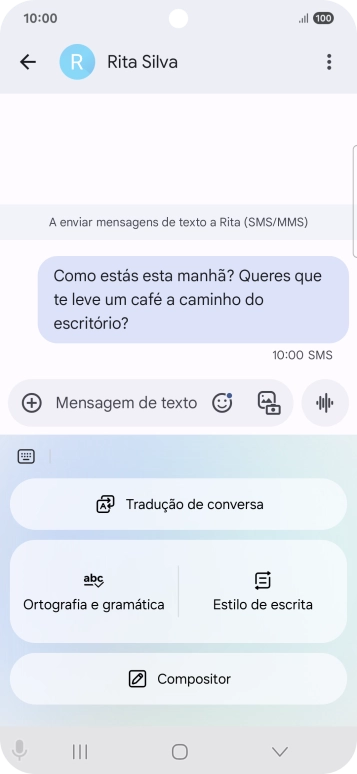 Para utilizar a IA Galaxy para traduzir mensagens, deverá abrir uma das apps suportadas, por ex. Mensagens.