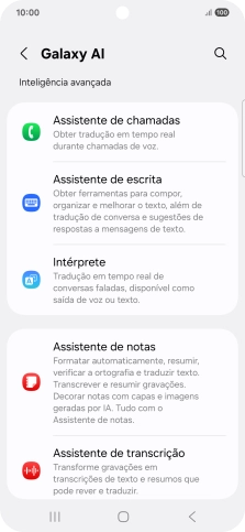 Para utilizar a IA Galaxy para traduzir durante uma chamada, prima Assistente de chamadas.