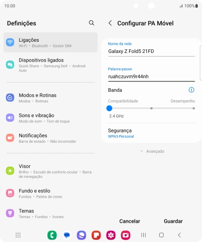 Utilize o Samsung Galaxy Z Fold5 Android 13 como hotspot Wi-Fi
