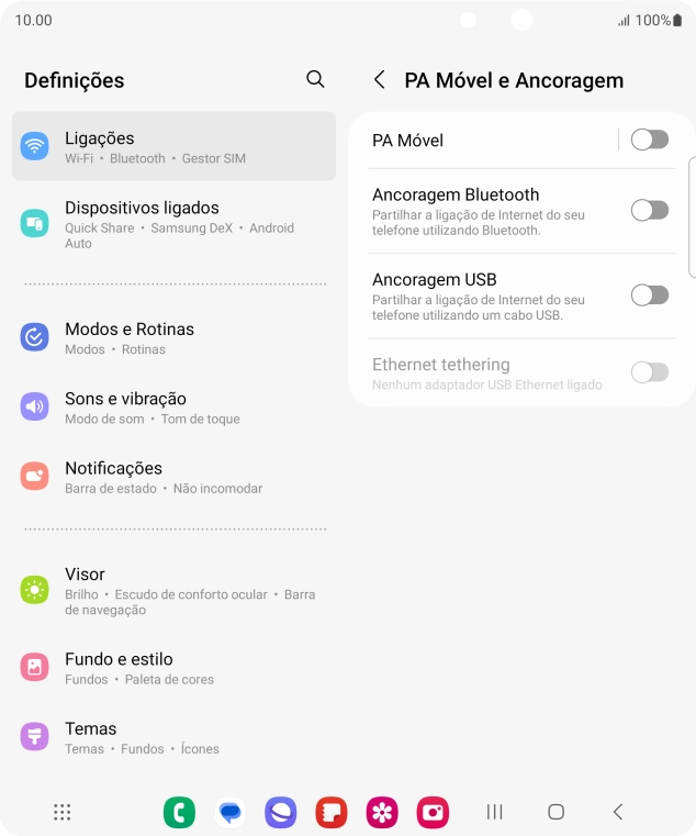 Quando a ligação estiver estabelecida, terá acesso à Internet a partir do outro dispositivo.