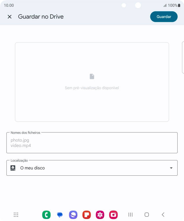 É possível fazer cópias de segurança de imagens ou clipes de vídeo com o Google Drive para que não sejam perdidos, por ex., quando atualiza o software do telefone ou se perder o telefone. Antes de fazer cópias de segurança de imagens ou clipes de vídeo, é necessário configurar o telefone para a Internet.