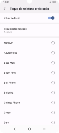 Se pretender escolher um tom de toque diferente do predefinido, prima Toque personalizado e siga as indicações no ecrã para escolher o tom de toque pretendido.