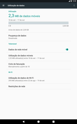 É possível ver a quantidade de dados móveis usados, por ex., quando tiver utilizado o browser ou enviado e recebido e-mails.