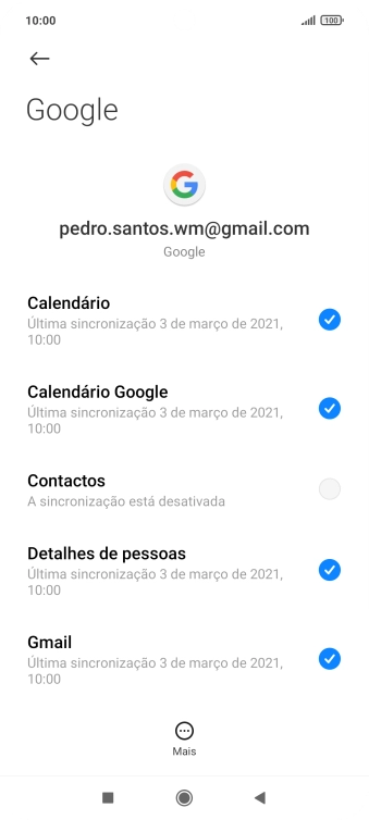 Copie contactos de redes sociais e contas de e-mail para o Xiaomi Mi 10T Lite Android 10.0