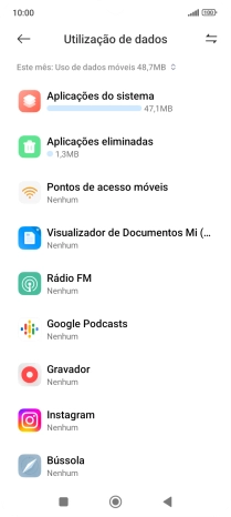 É possível ver a quantidade de dados móveis usados, por ex., quando tiver utilizado o browser ou enviado e recebido e-mails.